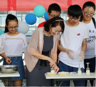 活动过程中,吴文俊老师品尝了学生制作的“校训月饼”系列之“务实”月饼。吴老师一直以来都以“务实”的态度传播知识,“超越”的教学方式打开学生的视野,鼓励学生遵循逻辑,敢说敢创新。