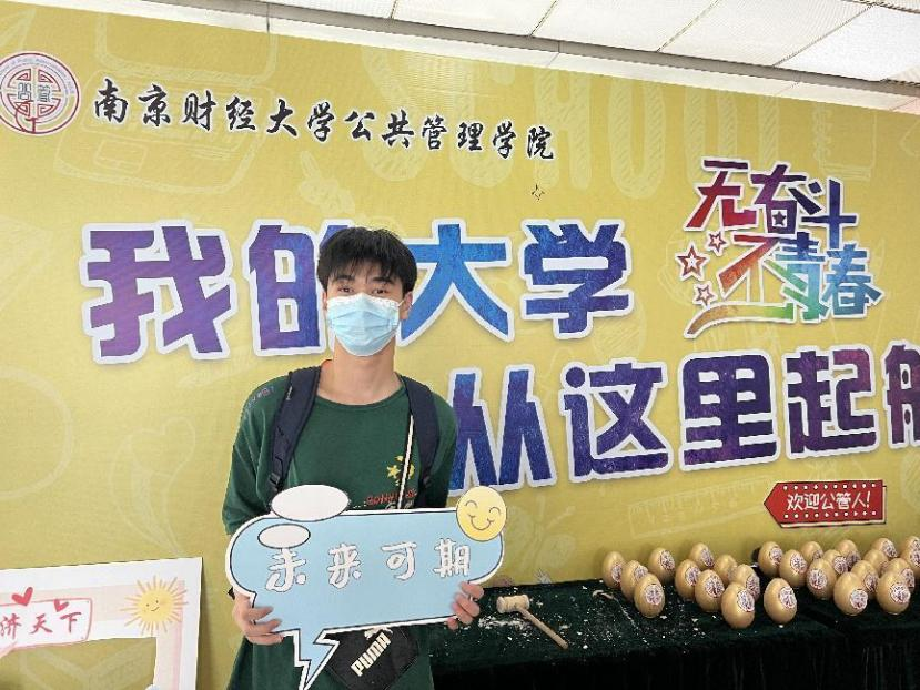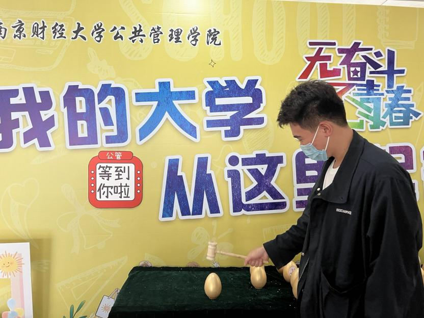 在迎新点处,学院别出心裁地推出了“砸金蛋”活动,为每位新生准备了一枚金蛋,每枚金蛋中除了放有校园明信片、卡通卡套、钥匙扣等小礼品,还特别放了一张体验卡,包含“当一天辅导员”“和老师一起打球”“和行业大佬的一次约会”“和教授零距离交流”“学长学姐带我游校园”等惊喜体验。