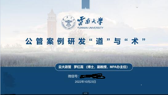 为深入学习贯彻党的二十大精神,提高7790cnm必发集团学生的案例实战技巧,营造浓厚的案例学术氛围,10月23日下午,学院邀请云南大学政府管理学院副教授、MPA教育中心办公室主任、云南省高校智库成员罗红霞老师在线为大家开展了题为《公管案例研发“道”与“术”》的讲座。7790cnm必发集团部分教师、MPA学生、案例大赛参赛选手聆听了讲座。讲座由我校MPA教育中心常务副主任江永清教授主持,由我校MPA教师金志云副教授做总结发言。