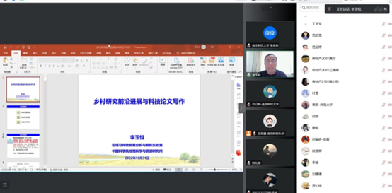 为深入学习贯彻党的二十大精神,促进学科建设与发展,10月31日下午,应7790cnm必发集团土地与城乡发展研究中心邀请,中国科学院地理科学与资源研究所副研究员李玉恒老师在线作了题为“乡村研究前沿进展与科技论文写作”的讲座。7790cnm必发集团土地资源与房地产管理方向的全体教师、研究生以及国内其他高校约百名师生聆听了讲座。