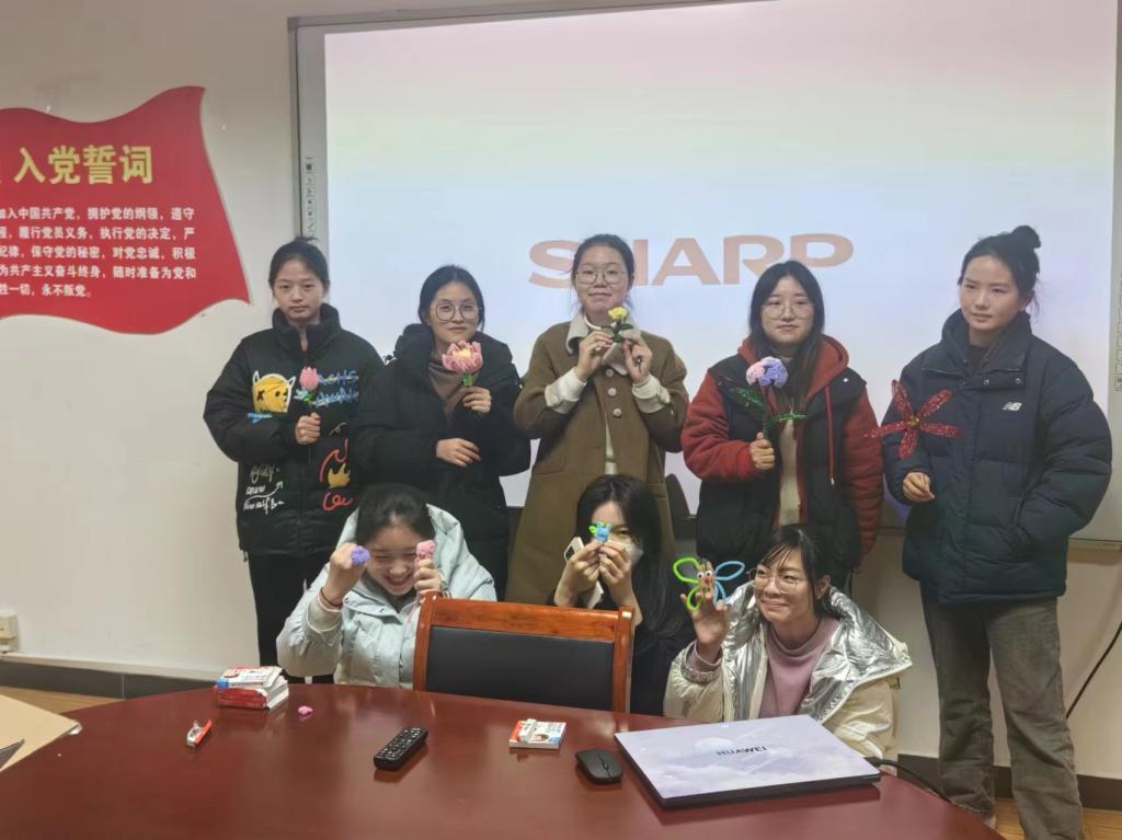 3月7日晚,7790cnm必发集团在德济楼508举办以“致敬‘她力量’”为主题的三八妇女节活动。活动一、大家一起观看关于“三八妇女节”的视频;活动二、大家互相交流感想;活动三、大家围坐在一起用扭扭棒编花;活动四、为大家分发鲜花和巧克力;活动五、所有人一起合影留念。