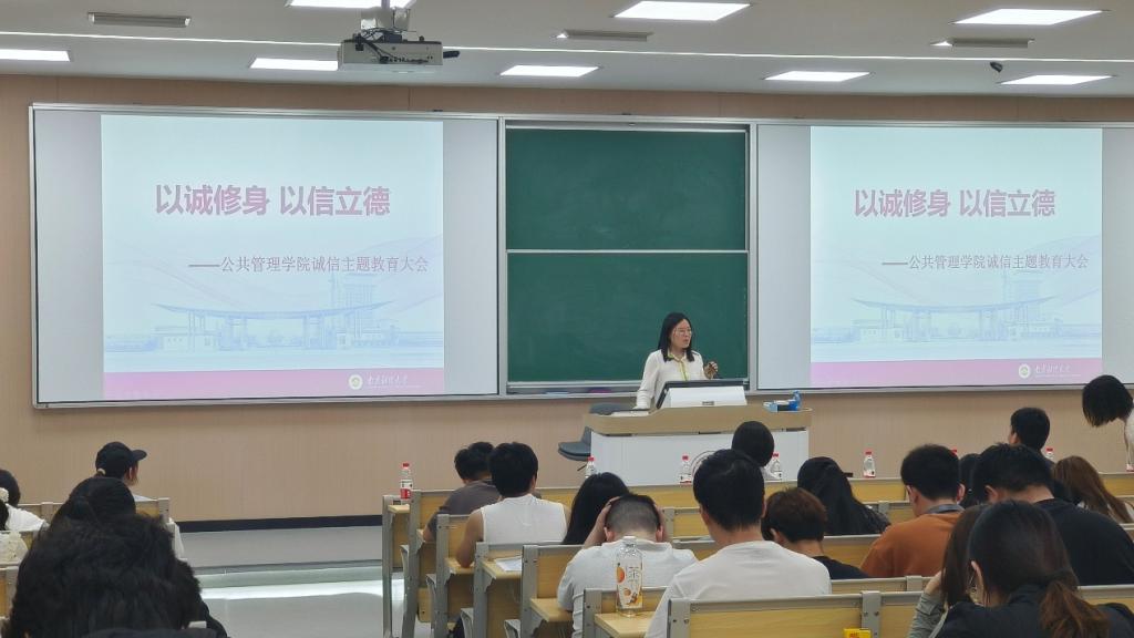 于华老师重点阐释了教育部有关《普通高等学校学生管理规定》中的部分具体规定,强调了该《规定》对维护高校正常教育教学秩序、保障高校学生权益发挥了重要作用。为增强学生诚信意识,规范诚信行为,全面提升学生的思想道德素养,引导学生在学习生活中主动宣扬诚信、践行诚信,增强学生的诚信意识,营造出“人人讲诚信”的良好氛围。