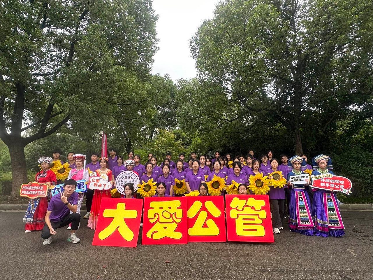 开幕式中,我院方阵的学生代表们身着紫衣白裤,手举向日葵,迈着整齐有力的步伐,将“大爱公管”的声音传遍整个操场。此外,还有少数民族同学身穿民族服饰行走于队列之中,更彰显了多样与团结的力量。广播操项目中,公管青年们大展青春风采,面带笑容,自信地做出每个动作,斩获广播操项目的二等奖。我院再续往届的荣光,荣获“道德风尚奖”,对全体师生的精彩表现给予了肯定和赞扬