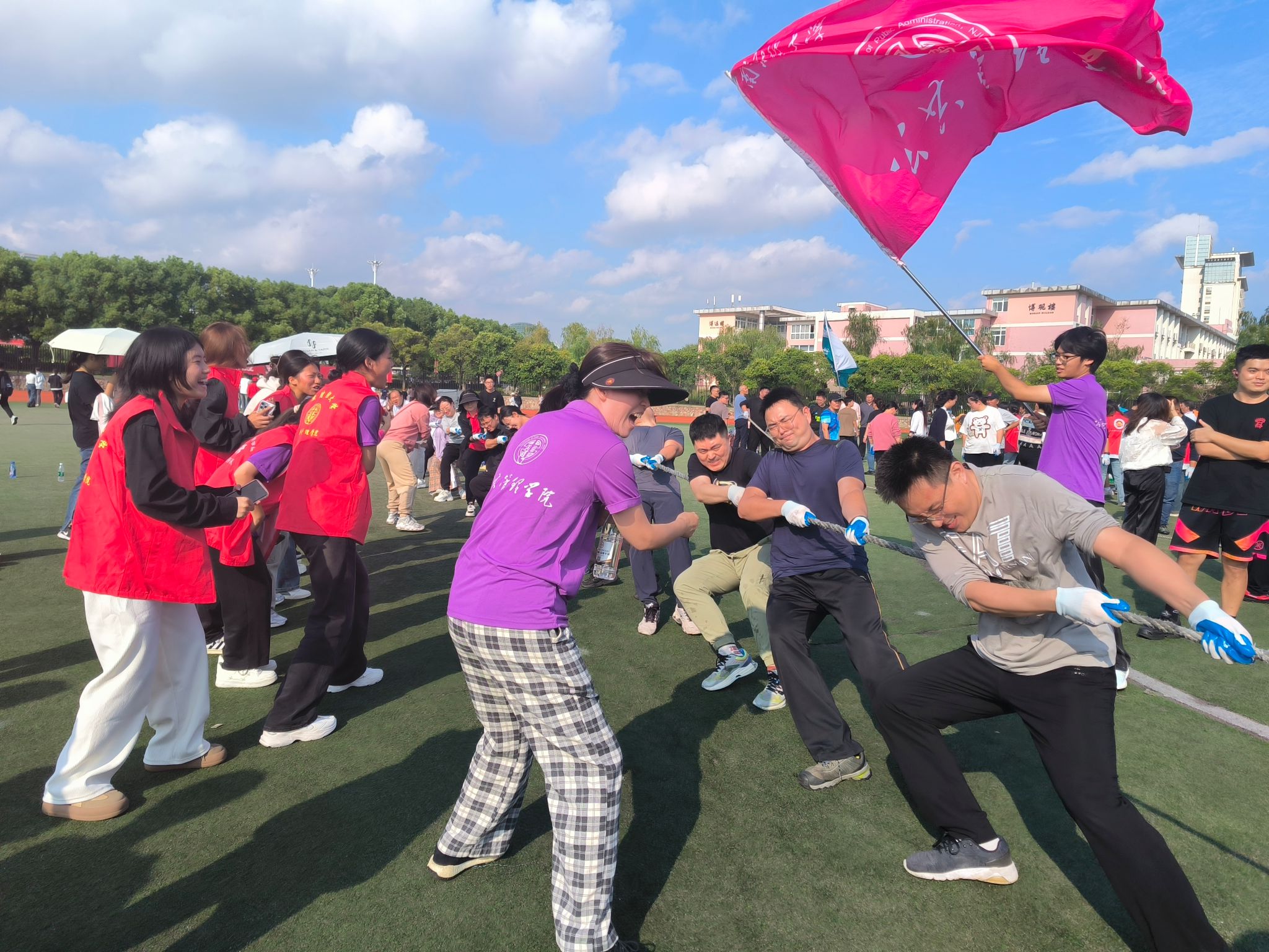 我院教师们在拔河项目中勇夺第五名的好成绩。老师们将力量拧在一处,汇聚到手中的一根长绳上,团结一心,以饱满的热情投入比赛。红布条的每一次移动,都牵动着参与者的心,也诠释着团队的强大力量。