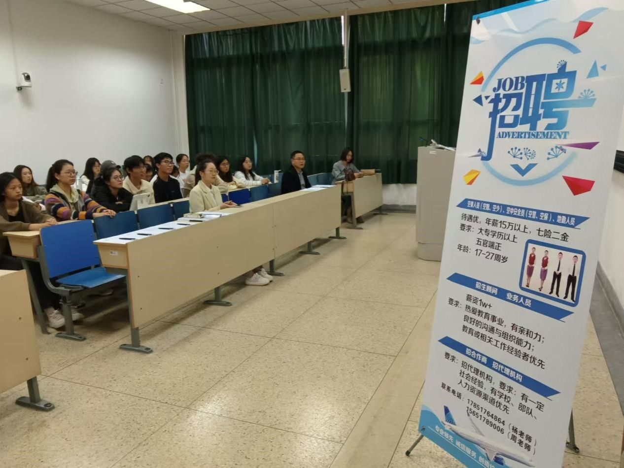 为了拓宽我院学生的就业视野,助力他们在激烈的就业环境中获取更加充分的信息,精准锚定自身职业航向,10月23日我院携手北京智库苑于德正楼110教室开展招聘宣讲会,本次宣讲会由北京智库苑专业老师主讲,我院众多怀揣蓝天梦想的学生参会聆听宣讲。