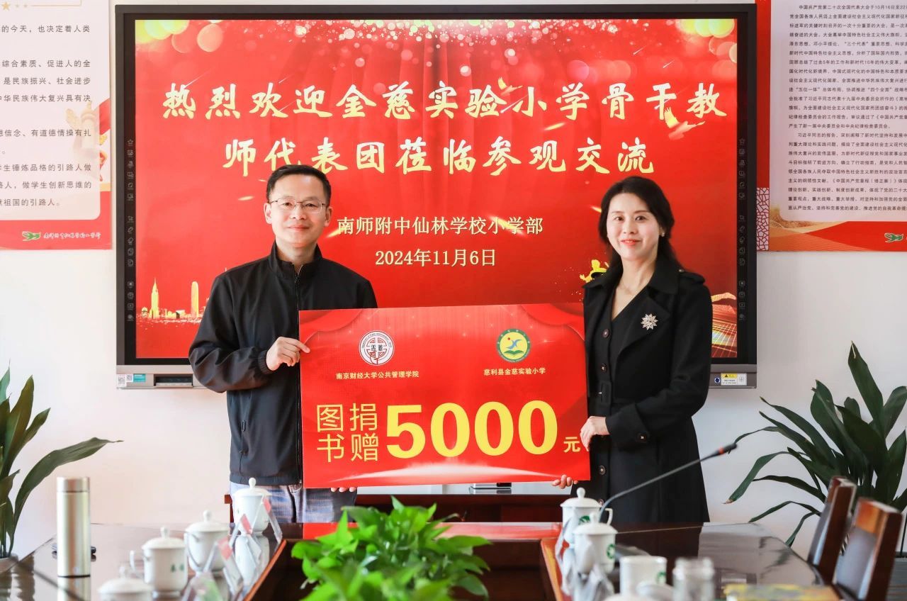 11月6日,湖南省张家界市慈利县金慈实验小学骨干教师代表团走进南京师范大学附属中学仙林学校小学部,开展为期一周的结对共建活动。我院党委书记高晓东受邀参加欢迎仪式,并代表学院向金慈实验小学捐赠爱心图书。
