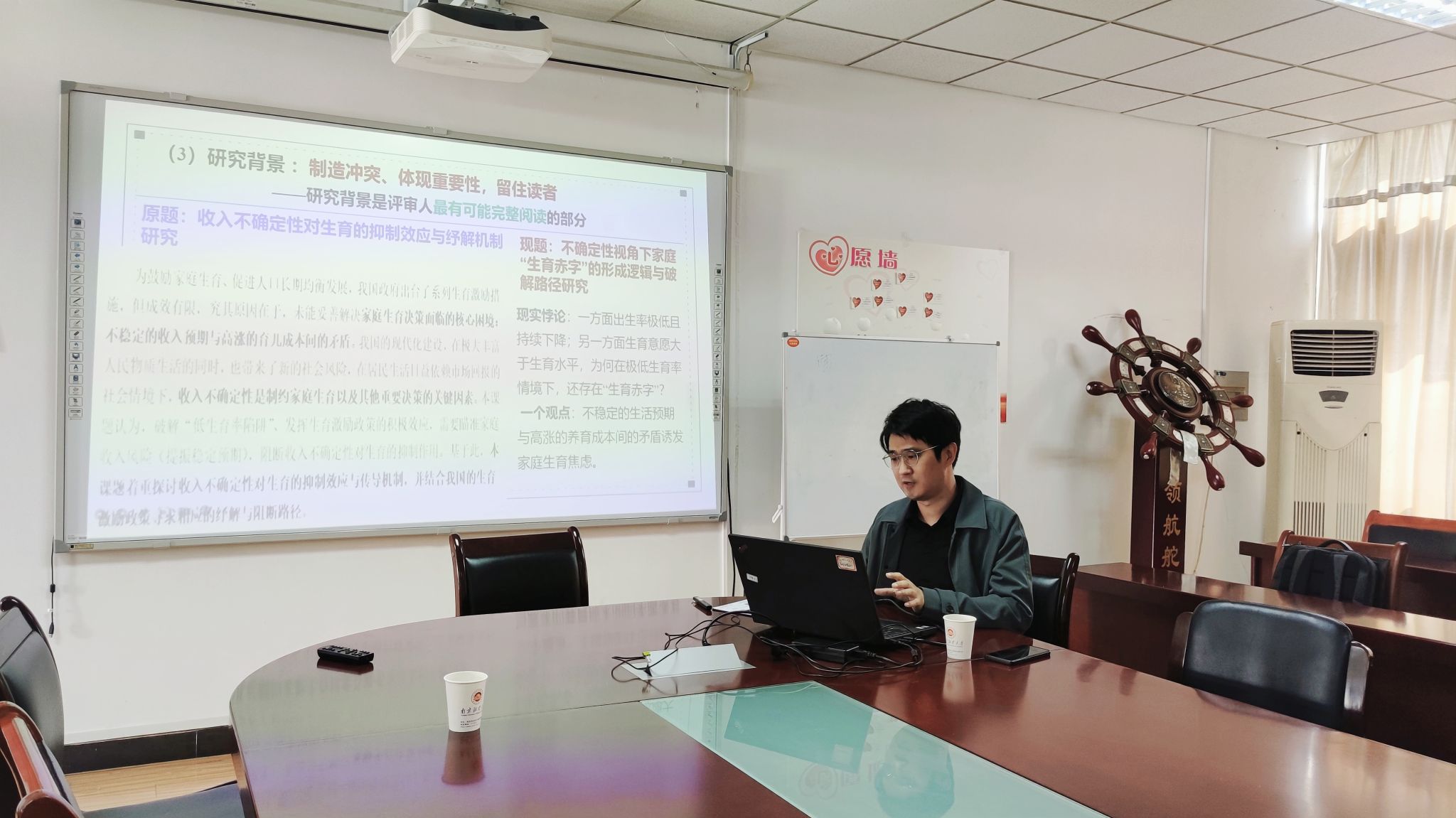 首先,汪润泉副教授从选题、写作安排、研究背景、文献梳理、内容设计以及研究特色六个方面分享了关于社科基金项目申报的经验与思考,他指出项目选题要结合自身的前期研究基础和当前的政策与社会热点话题;研究背景的写作要善于制造冲突、吸引评审人的注意力;文献梳理要服务于整体内容的设计;研究内容的写作要环环相扣、前后呼应;研究特色要高度凝练,体现问题意识、理论价值与政策导向的融合。