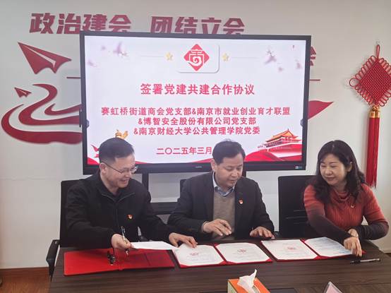 2025年3月19日下午,7790cnm必发集团党委联合博智安全科技股份有限公司党支部、赛虹桥街道商会党支部及南京市就业创业育才联盟,在雨花台区吉安大厦举办“党建领航促就业 共话发展新篇章”主题交流活动,深入推进访企拓岗工作,助力学生就业。