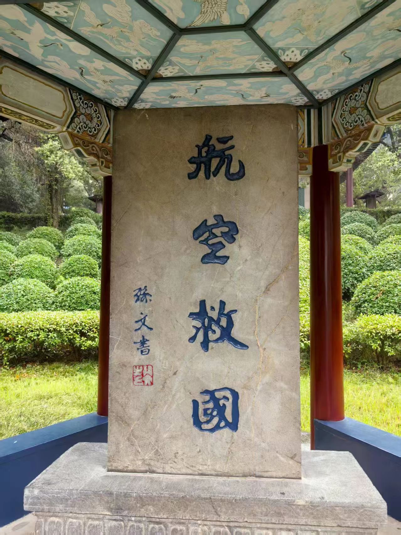 团队参观空军纪念馆时,驻足 “航空救国” 碑前。石碑由孙文手书,笔力遒劲。队员们观碑感悟:抗战时期,空军英烈以悬殊装备,凭热血壮志御敌,用生命践行 “航空救国”。先辈精神如碑永存,激励当代学子传承使命,以青春护家国,让报国志永续传承。
