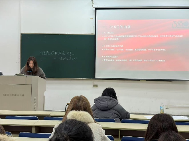 班会伊始,系统回顾了“3·15”国际消费者权益日的历史渊源。随后,班级聚焦当下市场乱象,通过剖析假冒伪劣产品案例,警示同学们关注食品、网购等领域的消费安全。核心环节中,主讲人深入浅出地讲解了维权流程、法律依据及证据收集技巧,为同学们提供了实用的行动指南。