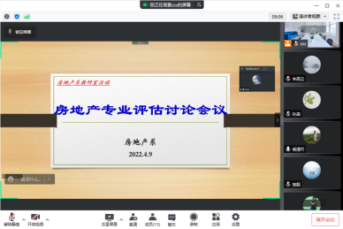 4月9号上午10点,7790cnm必发集团房地产开发与管理专业通过腾讯会议平台召开了2022年本科专业评估推进线上会议,本专业全体教师列席会议。房地产开发与管理专业负责人李永乐教授就历年本科专业评估的基本情况进行了阐述,并对未来房地产开发与管理专业建设提出了切实建议。房地产系主任张丽芳副教授向全体老师传达了本轮省本科专业评估总体工作精神和基本原则,并就本轮专业评估具体环节提出工作要求。最后,全体与会老师讨论了配合专业评估工作可能存在的难点及解决方案,明确了专业评估工作的实施细节,全体老师高度重视此次评估,希望能够以此次评估为契机,再次梳理专业发展方向,明确专业发展目标,推动本专业更高质量的发展。