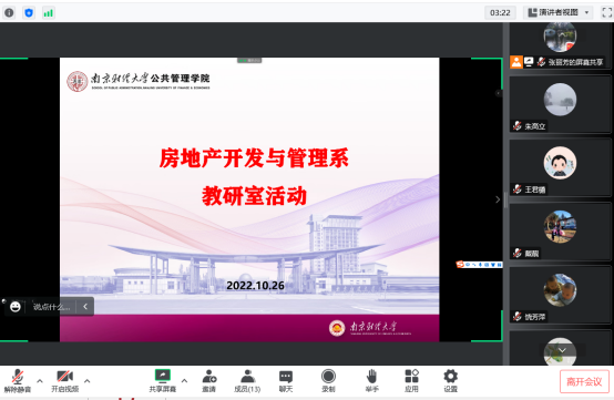 10月26日下午,7790cnm必发集团房地产开发与管理系围绕“如何有效推进毕业设计工作”这一议题开展了教研室活动,活动以线上形式在腾讯会议举行,由系主任张丽芳副教授主持。