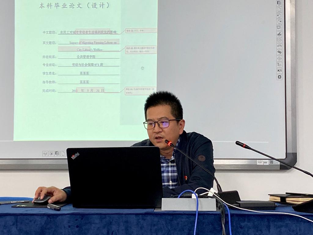 黄斌教授在学校规范要求的基础上对毕业论文整体格式做了进一步细化,具体从论文标题、目录、摘要、正文、参考文献以及注释等各方面对全院教师进行了培训。