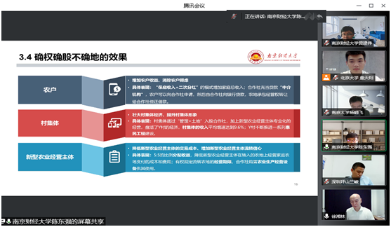 4月29日,我院黄建伟教授及硕士研究生陈东强应北京大学国家治理研究院邀请,参加了2022国家治理论坛(青年学者论坛),并分享了题为“确权确股不确地的农地流转何以成功?来自Y村的案例分析与发现”的论文。本次论坛以线上的形式举行。