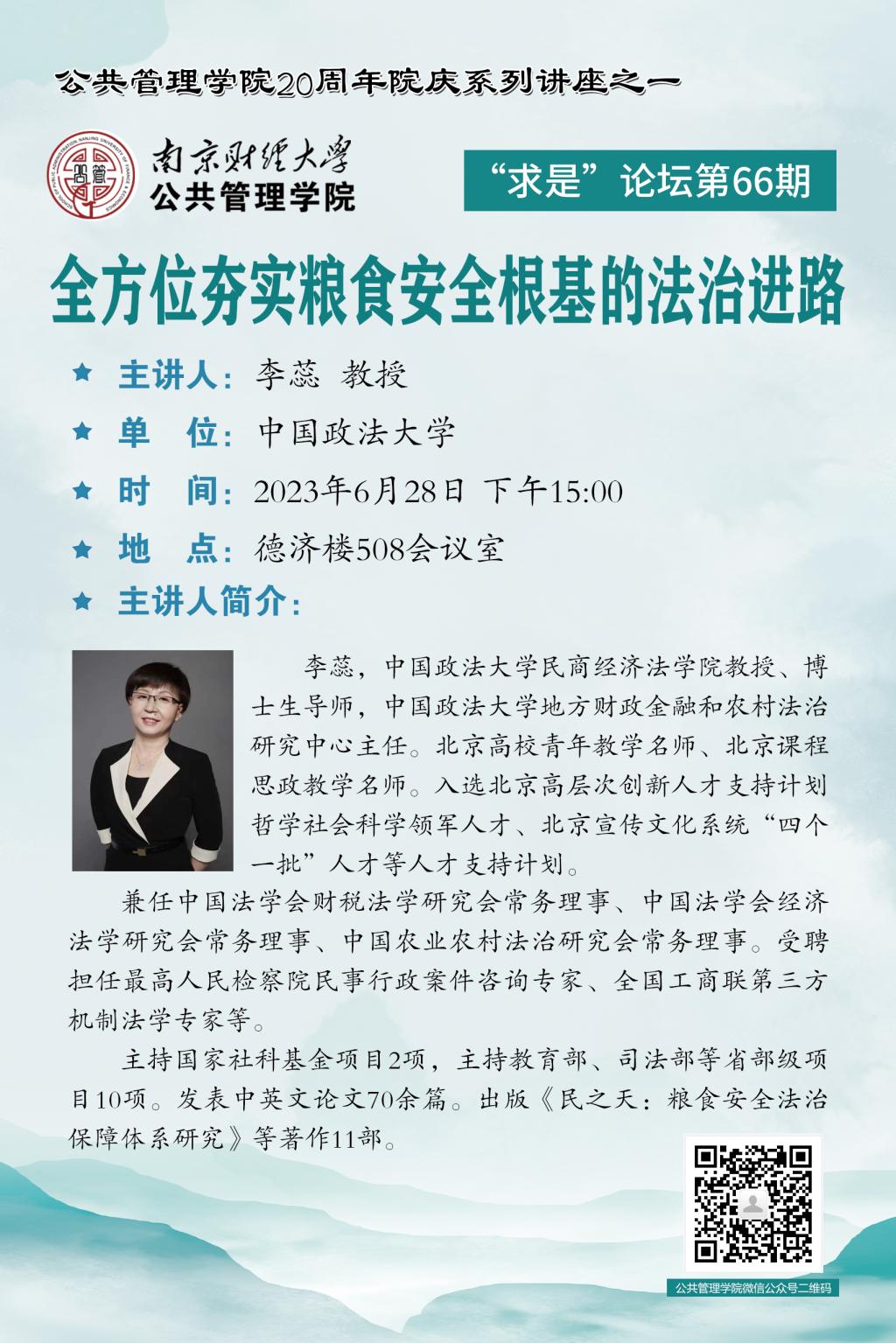 【讲座预告】“求是”论坛第66期