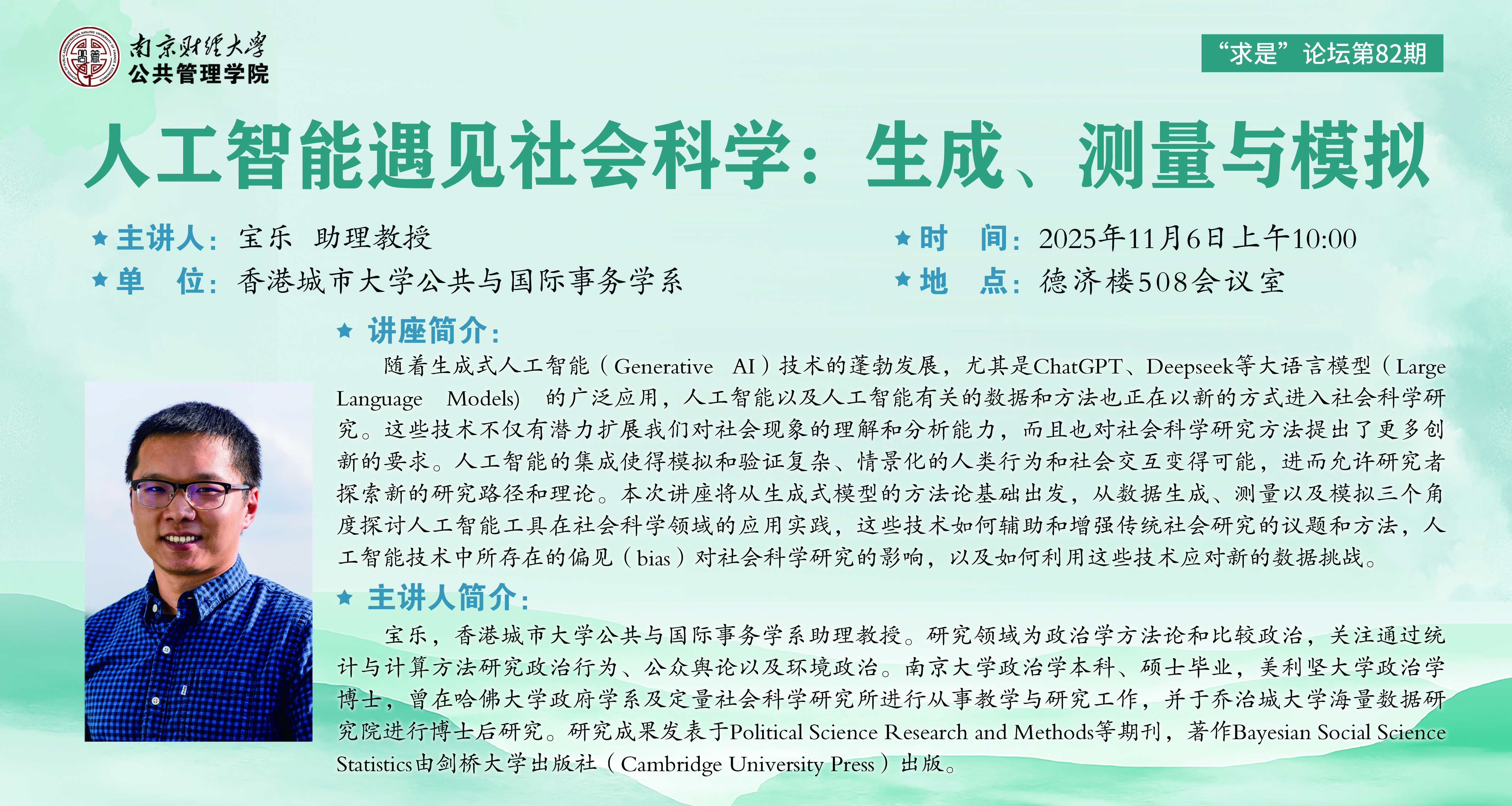 【讲座预告】“求是”论坛第82期