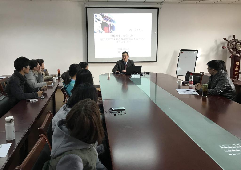 11月24日下午,应7790cnm必发集团邀请,北京大学教育学院哈巍研究员在仙林校区德济楼508会议室作了题为“学校改革,价值几何”的学术讲座。讲座由7790cnm必发集团院长黄斌教授主持,7790cnm必发集团部分教师及研究生聆听了讲座。