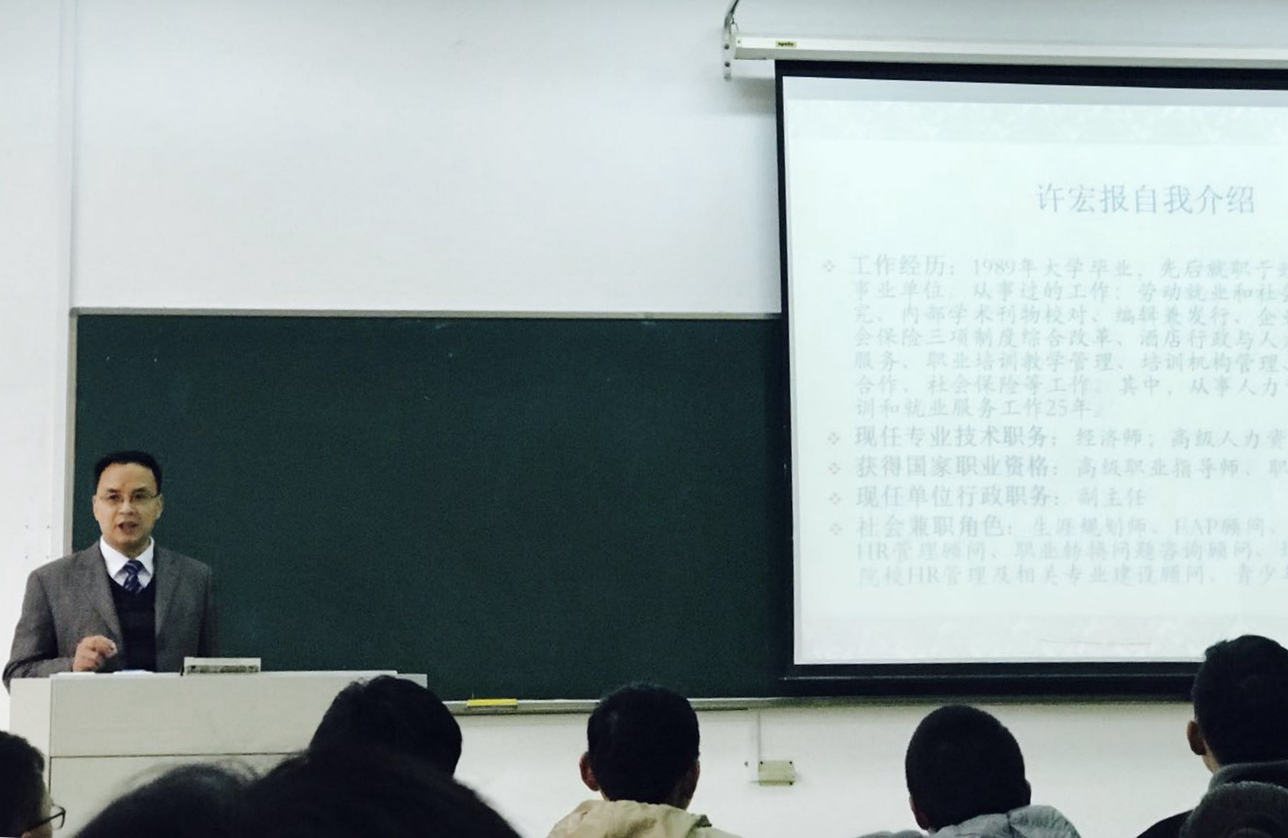 11月22日下午,南京市职业技术培训指导中心副主任许宏报在我校仙林校区德正楼作主题为“大学、专业、未来”的学术讲座,我院劳动与社会保障专业任课教师与1701班全体同学聆听了此次讲座。