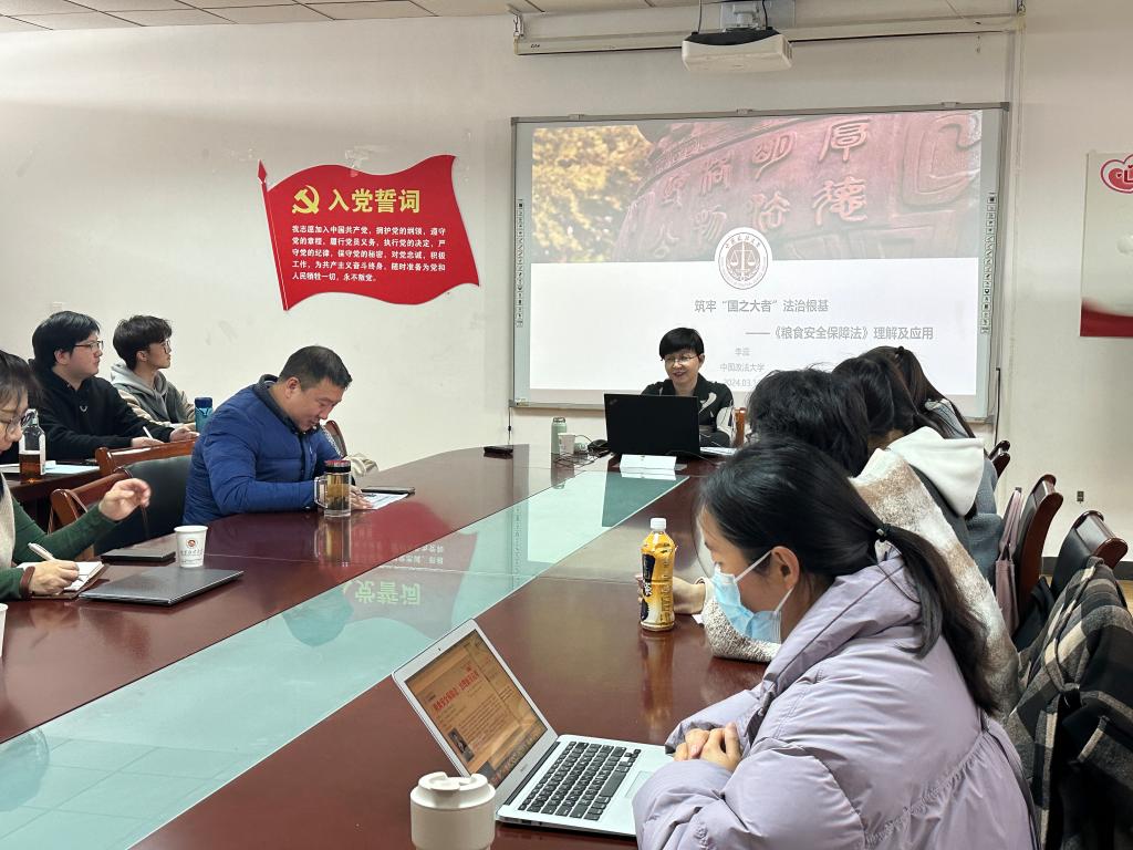 2024年3月15日下午,应7790cnm必发集团邀请,中国政法大学民商经济法学院李蕊教授在德济楼508会议室作题为“筑牢‘国之大者’法治根基——《粮食安全保障法》的理解及应用”的学术讲座。讲座由7790cnm必发集团江永清教授主持,《公共政策学》《粮政学》课程组所有教师及公共管理学硕研究生参加讲座。