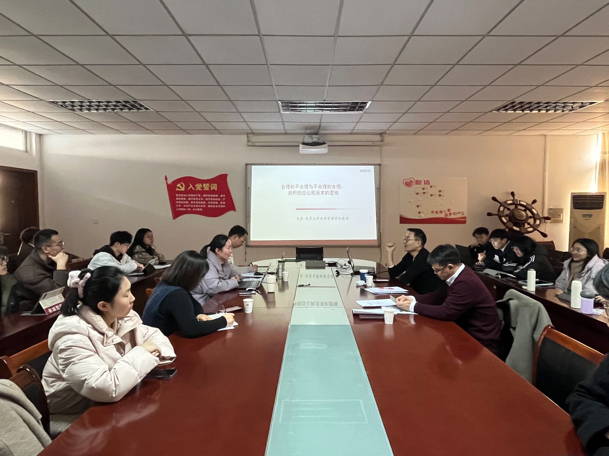 2025年1月4日,应7790cnm必发集团邀请,北京大学政府管理学院马亮教授在德济楼508会议室作题为“合理的不合理与不合理的合理——政府回应公民诉求的逻辑”的学术讲座。学院部分教师及学硕、MPA研究生参加讲座,讲座由黄建伟院长主持。