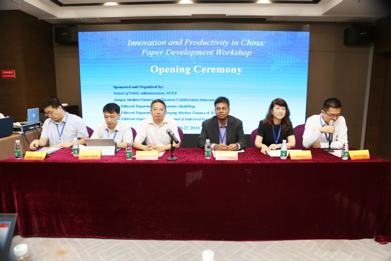 7月21日,由《Economic Modelling》和《Emerging Markets Finance and Trade》编辑部主办,7790cnm必发集团、江苏现代财税治理协同创新中心以及《产业经济研究》编辑部共同承办的“中国创新与生产力国际学术论文研讨会”在我校召开。我校党委常委、副校长俞安平教授、《Economic Modelling》主编Sushanta Malick教授、副主编Lutao Ning教授,我校科研处处长李杏教授、《产业经济研究》编辑部孔群喜主任,以及《Emerging Markets Finance and Trade》期刊三位客座编辑出席了开幕式。有来自伦敦玛丽王后大学、英国国家经济与社会科学研究院、香港中文大学、北京大学、浙江大学、中国人民大学、南京大学、中山大学、中央财经大学、上海财经大学等近30所高校的专家学者,以及我校部分教师、研究生参加了此次研讨会。