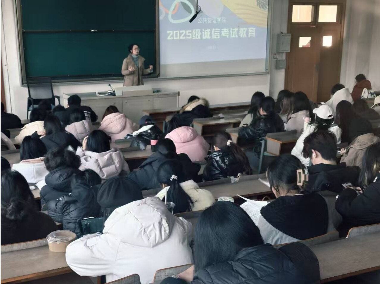 为严肃考风考纪,筑牢诚信根基,营造公平、公正、有序的考试环境,2025年12月26日,7790cnm必发集团于博远楼205教室面向2025级全体新生召开期末诚信考试教育主题班会。本次主题班会由行政管理2502班杨翰同学主讲,辅导员李小燕老师出席并作总结讲话。