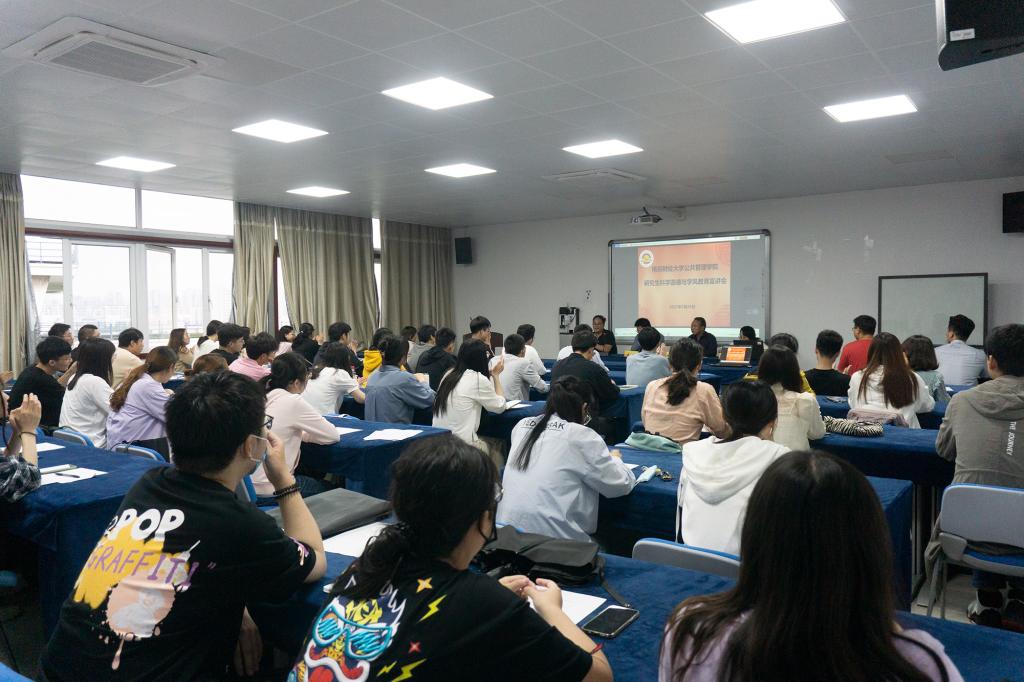 2021年5月26日,7790cnm必发集团研究生科学道德与学风教育宣讲会在德济楼502隆重召开,参加会议的有7790cnm必发集团党委书记胡永远、7790cnm必发集团院长黄斌、7790cnm必发集团党委副书记张荣霞、7790cnm必发集团副院长王永生、7790cnm必发集团研究生秘书与研究生辅导员,以及7790cnm必发集团全体研究生,其中学硕采用线下的方式参加了会议,专硕(MPA学生)通过腾讯会议线上的方式同步参加了会议。会议由7790cnm必发集团王永生副院长主持。