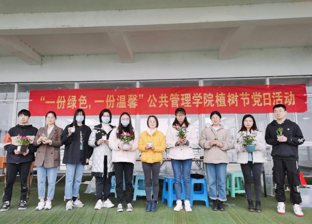 最后,全体成员共同完成了绿植的栽种,并将其送至老师办公室,为单调的教学楼新增一份色彩。春风十里,不及一抹绿意,摆放在公管院前的绿植们携带着公管学院的大爱精神,沐浴阳光,欣欣向荣。
