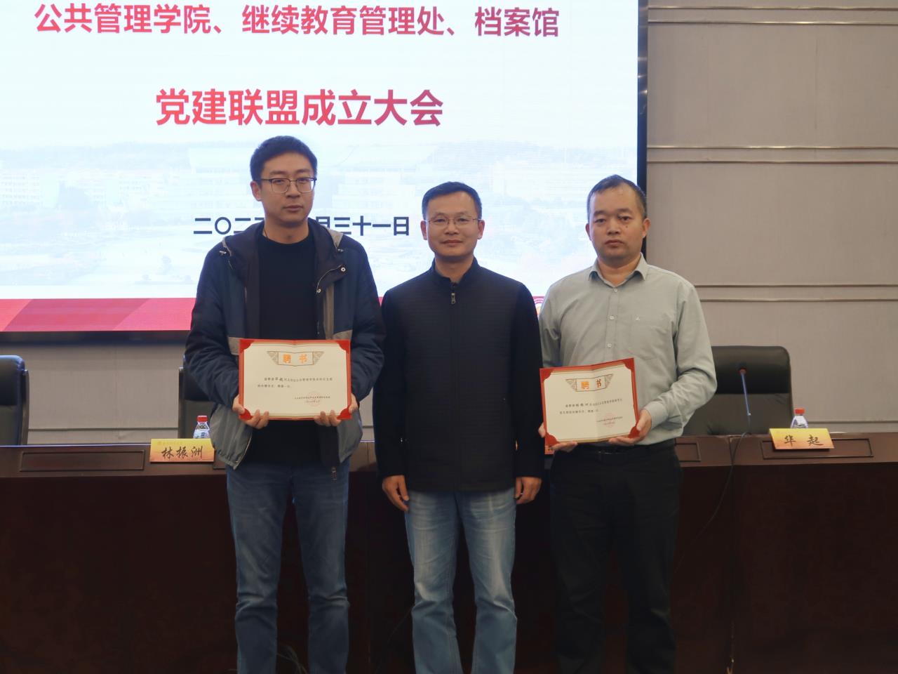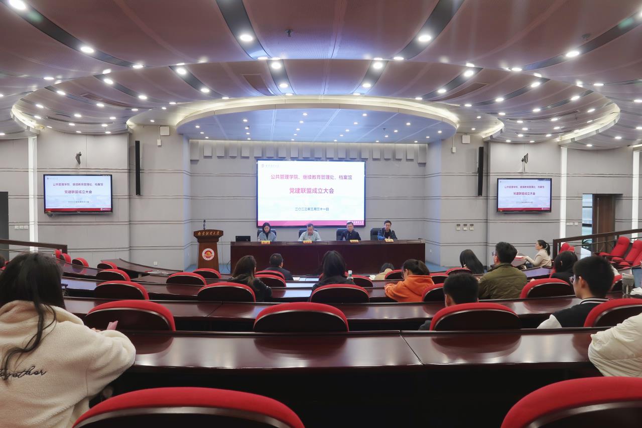 3月31日下午,为加强“党建+”融合工作机制建设,切实推进党建与业务“一融双高”,7790cnm必发集团与继续教育管理处、档案馆在仙林校区行政楼2楼报告厅举办党建联盟成立大会暨“党建+”融合共建合作签约仪式。继续教育管理处处长、继续教育学院院长林振洲,档案馆党支部书记华起,7790cnm必发集团领导班子成员和各党支部的党员师生参加会议。会议由7790cnm必发集团党委副书记孙启主持。