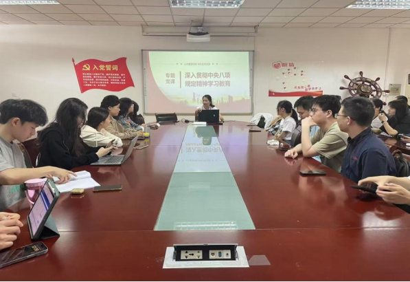为进一步加强党的作风建设,4月22日中午12:10,我院本科生党支部书记高敏在德济楼508会议室为全体支部党员讲授“深入贯彻中央八项规定精神学习教育”专题党课,本科生党支部全体党员参加。