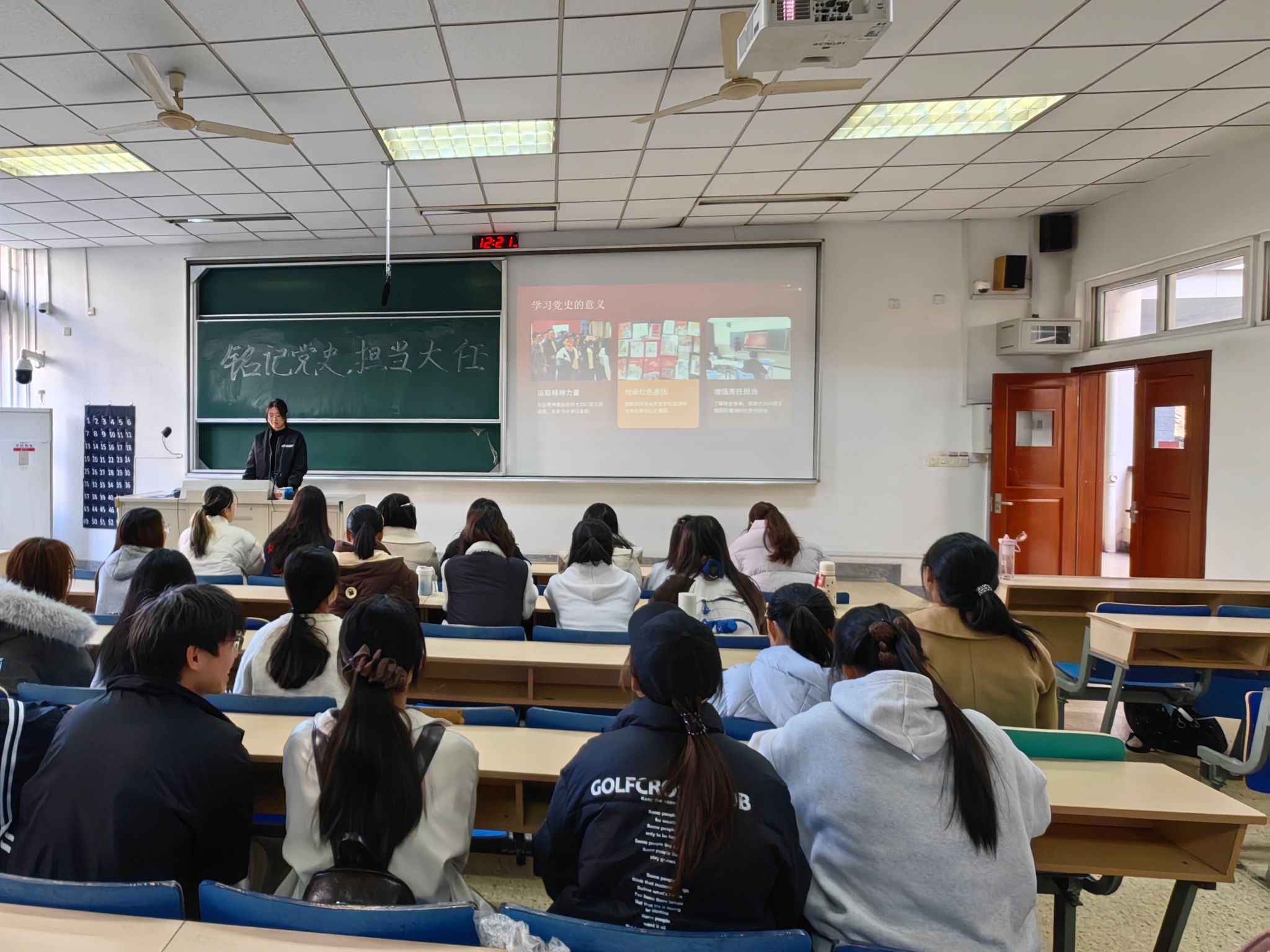 团支书首先阐述了学习党史与新中国史的重要意义,指出新中国史是中国共产党领导全国各族人民进行社会主义革命、建设和发展,取得举世瞩目成就的历史,是党史在执政条件下的具体展开和生动实践。她强调,作为新时代的青年团员,只有深入了解这段波澜壮阔的历史,才能深刻理解中国特色社会主义的道路、理论、制度、文化优势,才能更好地把握当下、开创未来。